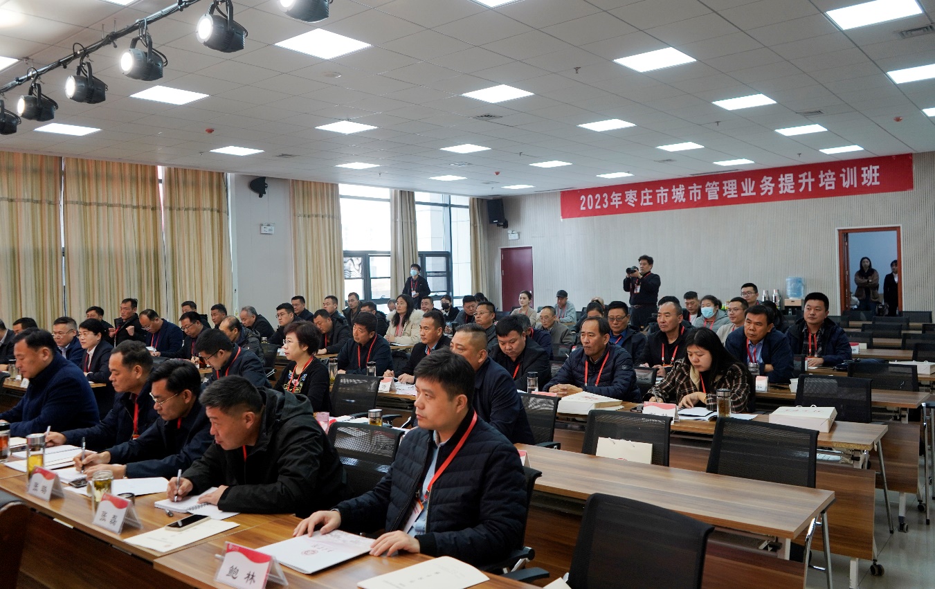 11月28日-12月1日,“2023年枣庄市城市管理业务提升培训班开班式”在我校薛城校区明理楼113会议室举办。校党委委员、副校长安涛,枣庄市城市管理局党组成员、市城市管理发展服务中心主任张成磊出席开班式。枣庄市城市管理发展服务中心全体人员,各区(市)、枣庄高新区市政、园林、环卫中心相关领导以及业务骨干参加培训。