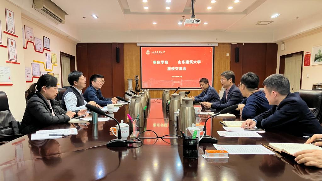 在山东建筑大学,考察团一行受到了山东建筑大学领导的热烈欢迎。山东建筑大学党委副书记、校长于德湖,党委委员、副校长李青,研究生处处长赵继龙,科技处处长兼土木工程学院院长李秀领,材料科学与工程学院院长鲁守银、学报编辑部孙浩森等出席欢迎仪式。于德湖简要介绍了山东建筑大学的发展历史、应用研究性大学建设、学科建设和研究生培养等方面的工作。李目海介绍了DB中国旗舰官方网站在校企合作、援疆支教、健康工程等方面的发展特色,并简要介绍了学校科学研究和服务地方等工作,希望山东建筑大学在硕士点建设等方面给予支持帮助。