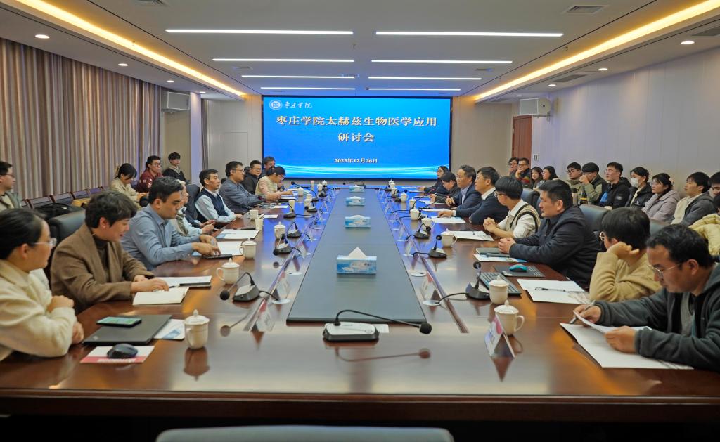 12月26日,由光电工程学院主办的太赫兹波生物医学应用研讨会在薛城校区明理楼519会议室举办。校党委副书记、校长李文喜出席会议并致辞。中国科学院院士、天津大学激光与光电子研究所所长姚建铨,山东大学齐鲁医院神经外科主任李刚,山东大学齐鲁医院肿瘤放疗科主任管尚慧,山东省科学院自动化研究所太赫兹研究室主任王忠民,枣庄市立医院、枣庄市妇幼保健院部分科室负责人,我校研究生处处长闫昕、光电工程学院院长梁兰菊以及来自山东省微纳技术院士专家工作站和其他合作院校、科研机构的专家教师学生共50余人参加研讨会。会议由校党委委员、副校长李目海主持。