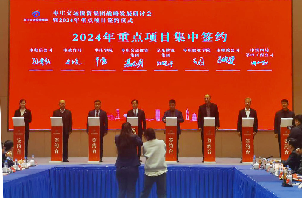12月23日下午,枣庄交运投资集团战略发展研讨会暨2024年重点项目签约仪式在枣庄温德姆酒店举行。学校党委委员、副校长丰雷出席仪式并签约,学校办公室、合作发展处、人事处、学生工作处、工会、城市与建筑工程学院等部门负责同志参加仪式。