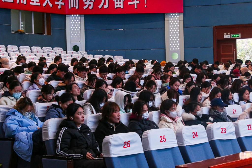本次报告会在薛城校区崇德楼报告厅、市中校区综合楼学术报告厅采用主会场和分会场同步直播方式进行,全校副科级及以上干部、各民主党派、党外知识分子代表、马克思主义学院专任教师、全校专职辅导员及部分学生代表聆听报告。