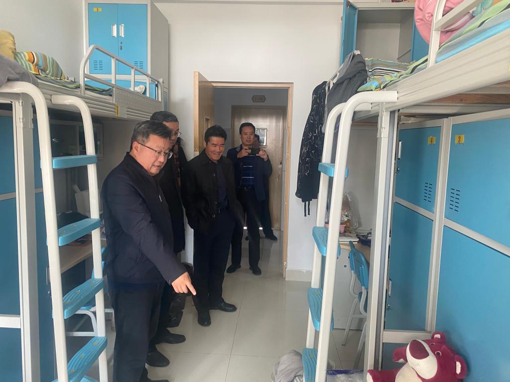 为贯彻落实全省学校安全工作视频会议精神,11月20日、21日,校党委委员、副校长丰雷带队检查市中校区、薛城校区安全工作,市中校区管委会、后勤服务处、学生工作处、校园建设与管理处、保卫处负责人及相关人员陪同检查。
