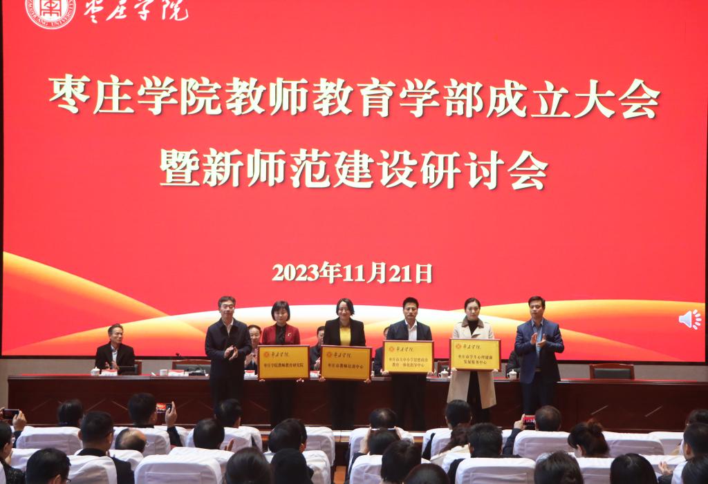 11月21日上午,DB中国旗舰官方网站教师教育学部成立大会暨新师范建设研讨会在薛城校区崇德楼报告厅举行。枣庄市委常委、宣传部部长、教育工委书记陈永生,市委教育工委常务副书记、市教育局党组书记、局长王光明出席大会,DB中国旗舰官方网站党委书记高峰出席并致辞,校党委副书记、校长李文喜,校党委委员、副校长安涛出席活动,学校相关职能部门和各师范专业教学单位负责人、教师代表参加。教师教育学部成立大会由李文喜主持。