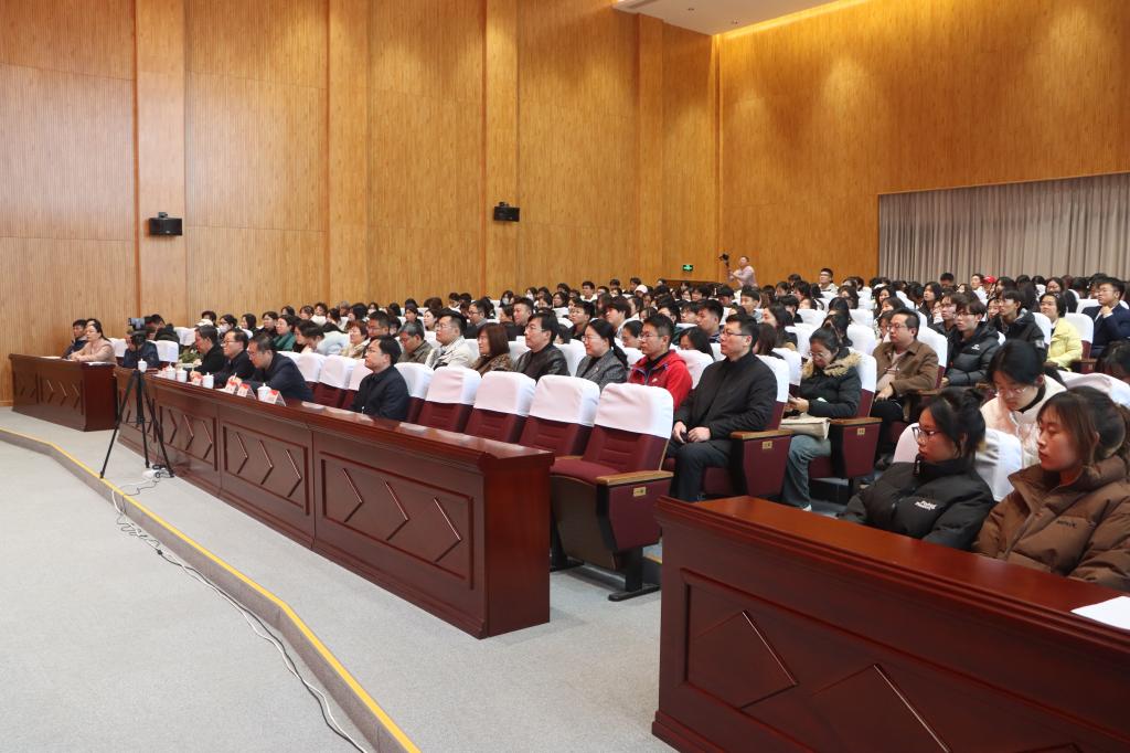 本次报告会分别在薛城校区崇德楼报告厅、市中校区综合楼学术报告厅采用主会场和分会场同步直播方式进行,各二级学院党总支副书记、学工办主任、辅导员、各学院学生代表聆听报告。