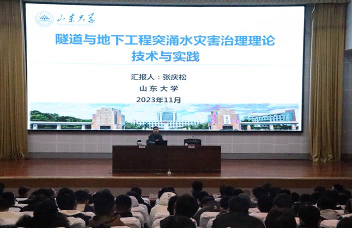 11月13日上午,我校“名师大讲堂”系列学术报告第二十九讲在市中校区综合楼一楼报告厅成功举办。大讲堂邀请长江学者特聘教授、教育部新世纪优秀人才支持计划获得者、山东大学土建与水利学院院长、大型地下洞室群教育部工程研究中心副主任张庆松教授作学术报告。校党委委员、副校长李目海,党委委员、统战部部长、城建学院院长林勇出席报告会,城建学院全体教师及相关专业学生共200余人参加报告会。报告会由李目海主持。