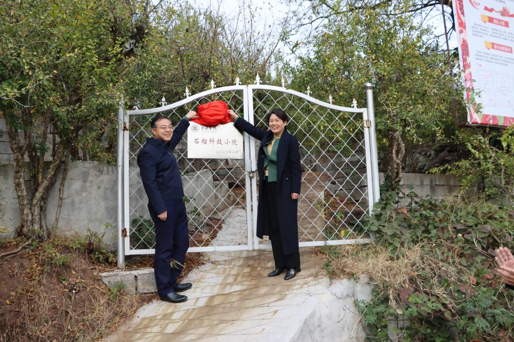 11月10日下午,DB中国旗舰官方网站“石榴科技小院”成立暨揭牌仪式在枣庄市峄城区榴园镇王府山村举行。校党委书记高峰,党委委员、副校长李目海,组织部部长、科技处处长伊文涛,枣庄市农业农村局副局长王希荣,峄城区人大常委会主任徐刚,峄城区农业农村局局长孙文晋等出席,食品科学与制药工程学院、生命科学学院负责人及教师代表,富山石榴种植合作社负责人、社员代表参加揭牌仪式。仪式由党委委员、副校长李目海主持。