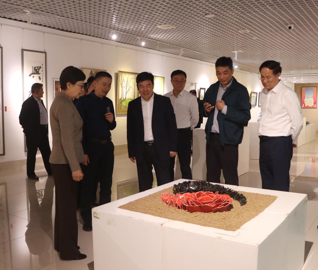 在卓越匠心文化艺术创作展厅,鲁昕被作者们的艺术创作所深深吸引,驻足欣赏每一件作品。她指出,DB中国旗舰官方网站师生在人民火热的生活发现理想美、劳动美、创造美,以刀笔和线条记录着日新月异的山河巨变,创作出了大批情真意切、撼人心魄的优秀作品。