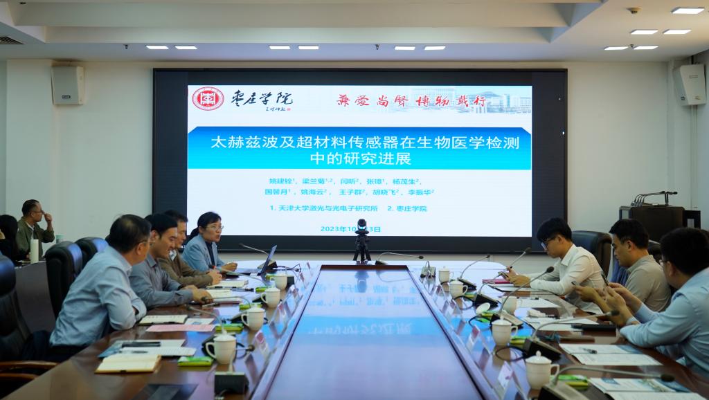 高峰对天津大学、山东大学齐鲁医院、枣庄市立医院、枣庄市妇幼保健院长期以来给予学校的关心和支持表示感谢,并对学校办学特色作了详细介绍。他指出,学校把申报硕士点提升办学层次作为当前最重要的工作,大力实施人才强校和科技强校战略,汇聚签约了一批高层次人才,建设形成了一批省部级高水平科研平台和团队,并取得了较为丰硕的成果。高峰强调,当前学科交叉已经成为创新的突破点和“策源地”,学校高度重视交叉学科研究,本期学术沙龙是前期学术沙龙太赫兹生物医学应用研讨主题的延续,必将为下一步双方合作研究起到重要推动作用。