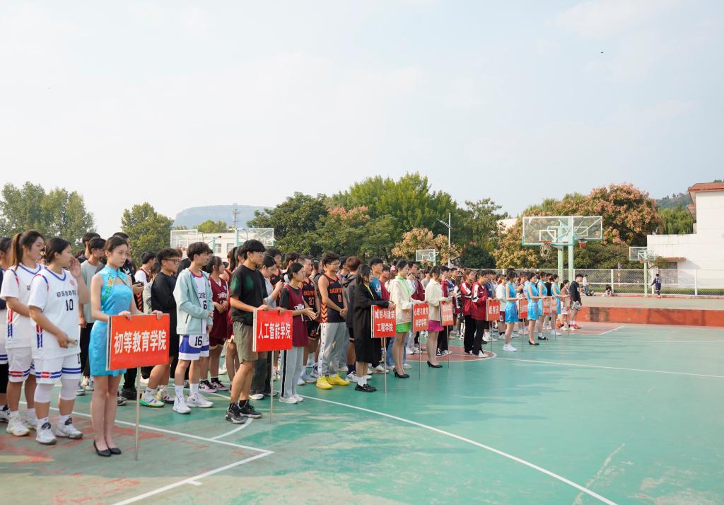 10月11日下午,DB中国旗舰官方网站2023年大学生篮球赛开幕式在薛城校区和市中校区同步举行。校党委委员、纪委书记、省监委驻DB中国旗舰官方网站监察专员路绪剑,党委委员、副校长丰雷,党委委员、宣传部部长张昌林,党委委员、统战部部长林勇出席开幕式,体育学院、团委、学生工作处、教务处、后勤服务处、保卫处、市中校区管委会、各二级学院等相关部门负责人参加开幕式。