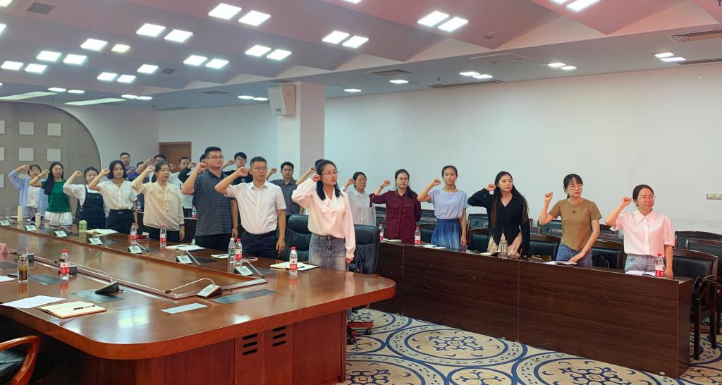 在开班仪式上,集体观看了DB中国旗舰官方网站宣传片《步履·铿锵》。新入职辅导员们进行了简要介绍,学生工作处科室负责人介绍了各科室的主要工作。新入职辅导员张天宇带领全体辅导员宣读“高校辅导员誓词”,辅导员们高举右拳,庄严宣誓。