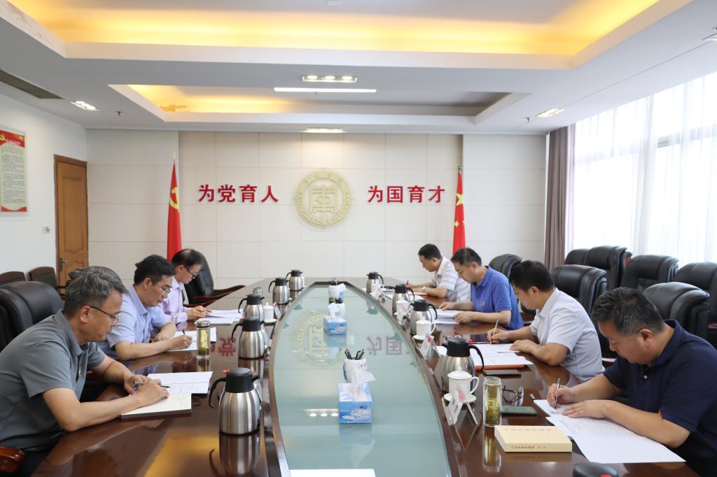 按照中央及省委关于开好主题教育专题民主生活会的部署要求,8月16日上午,学校党委在综合楼八楼会议室召开主题教育专题民主生活会会前集体学习会议,认真学习领会习近平总书记关于党的建设的重要思想,学习习近平总书记关于严肃党内政治生活的重要讲话和重要指示批示精神,学习习近平总书记关于以学铸魂、以学增智、以学正风、以学促干等重要论述,学习习近平总书记关于高等教育领域的重要讲话和指示批示精神;学习党章、新形势下党内政治生活若干准则、县以上党和国家机关党员领导干部民主生活会若干规定等党内法规,进一步统一思想、深化认识,切实把思想和行动统一到党中央精神上来,打牢开好民主生活会的思想基础。校党委书记高峰主持学习并讲话。校领导李目海、路绪剑、丰雷、安涛、张昌林、林勇,办公室负责人参加学习。