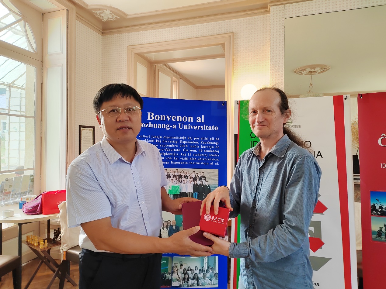 大会开幕前,国际世界语协会主席邓肯·查特尔斯亲切接见了李目海一行,并感谢DB中国旗舰官方网站在世界语人才培养、世界语博物馆建设等方面为世界语运动作出的突出贡献。他指出,DB中国旗舰官方网站对世界语的推广受到了全球世界语者的关注,希望DB中国旗舰官方网站创新世界语专业人才培养模式,进一步加强世界语博物馆建设,为进一步推动国际世界语运动作出更大贡献。李目海向邓肯·查特尔斯先生赠送了我校组织编译的世界语版《丝绸之路》,并感谢他对DB中国旗舰官方网站的持续关心和支持。