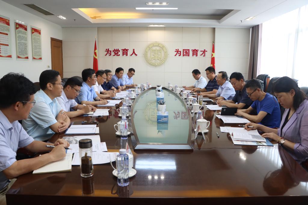 7月13日上午,青岛理工大学(临沂校区)党委委员、管理办公室常务副主任崔洪俊一行6人来我校考察交流。我校党委委员、副校长安涛,党委委员、统战部部长林勇热情接待了崔洪俊一行。随后,双方在综合楼八楼会议室进行座谈。校团委、学生工作处、国有资产管理处、后勤服务处、校园建设与管理处、图书馆等部门负责人参加座谈。座谈会由林勇主持。