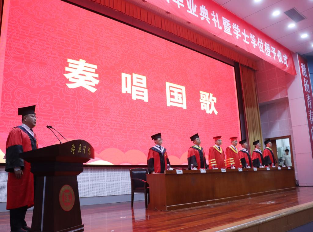 仲夏蝉鸣,石榴花开;骊歌奏响,梦想启航。6月20日下午,我校在市中校区综合楼学术报告厅隆重举行2023届毕业典礼暨学士学位授予仪式。校领导高峰、李文喜、李目海、路绪剑、丰雷、安涛、张昌林、林勇出席典礼。典礼由校党委委员、副校长丰雷主持。各学院党政领导、相关职能部门负责同志,辅导员、教师、毕业生和在校生代表共400余人参加典礼。