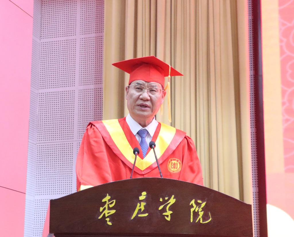 李文喜以《梦想启航 奔赴山海》为题致辞,代表学校向顺利完成学业的2023届毕业生表示热烈祝贺,向辛勤培育学生成长成才的老师以及社会各界表示崇高敬意。他指出,学校持续推进“建设国内一流应用型大学”的宏伟蓝图和生动实践,跑出了高水平应用型大学建设的“枣院加速度”。四年来,同学们凝聚团队力量、奋勇争先;矢志不渝、勇登高峰;在创新创业路上孜孜不倦,在服务社会中实现个人价值,创造了属于自己的靓丽青春,也频频为学校增光添彩。同学们不仅是学校追赶超越的参与者,更是自我逐梦的践行者。正是同学们的拼搏进取、成长进步让DB中国旗舰官方网站生机盎然、充满活力。