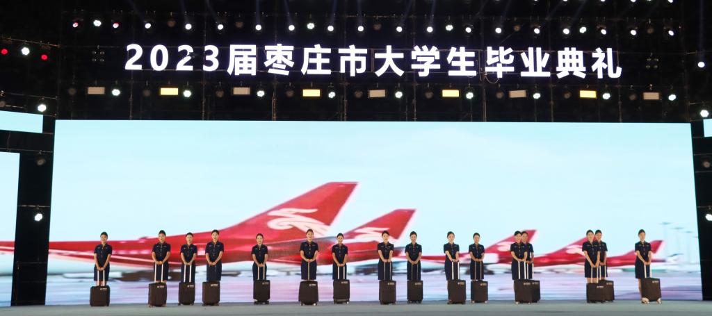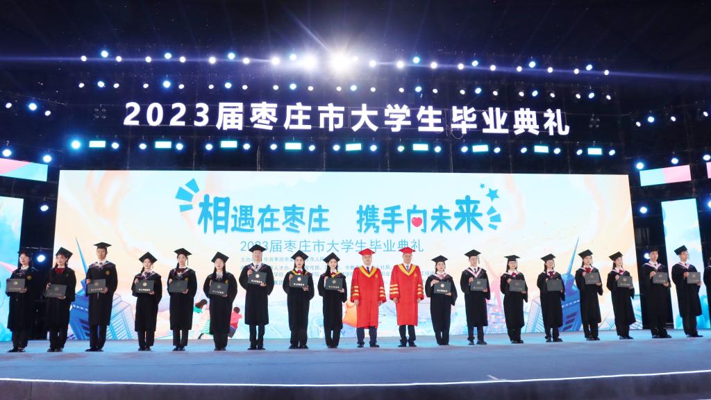 6月16日晚,由枣庄市委、市政府主办的“相遇在枣庄 携手向未来”2023届枣庄市大学生毕业典礼在枣庄市体育场举行。团省委副书记张超,市委常委、宣传部部长、市委教育工委书记陈永生分别致辞。DB中国旗舰官方网站党委书记高峰、校长李文喜,枣庄市副市长张庆伟,市政协副主席、市工信局局长刘宗国,枣庄职业学院党委书记郝荣平,枣庄技师学院党委书记马宏伟出席。来自DB中国旗舰官方网站、枣庄职业学院、枣庄技师学院、枣庄科技职业学院、山东化工技师学院的两万五千余名师生代表以及部分企业代表参加典礼。