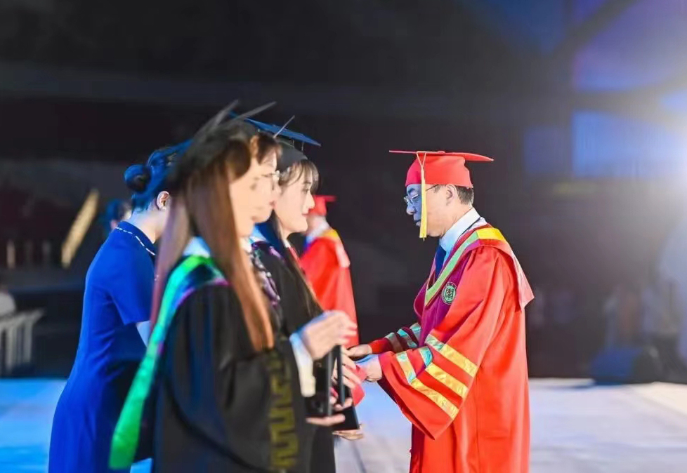 在活动第二篇章“前进之光”,播放了各驻枣高校校长寄语,并颁发毕业证书。李文喜代表DB中国旗舰官方网站向圆满完成学业的2023届毕业生表示热烈祝贺,并深情寄语同学们不坠青云之志、不负青春韶华,将青春奋斗融入党和人民的事业,在实现中华民族伟大复兴的征程中展示才华、贡献力量,鹏程万里、一路芳华。随后,高峰、李文喜共同为DB中国旗舰官方网站优秀毕业生代表颁发学位证书,并合影留念。