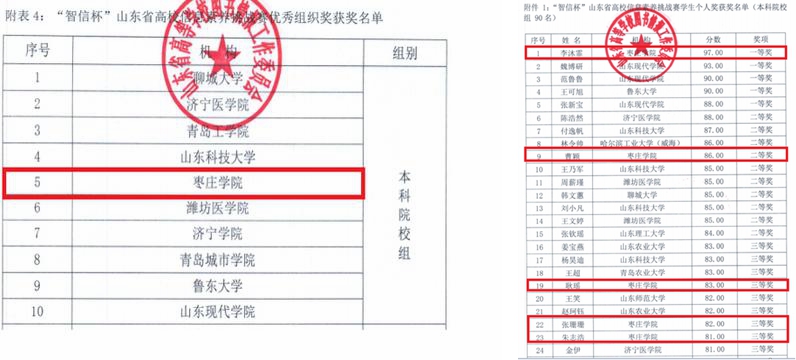 日前,第二届“智信杯”山东省高校信息素养挑战赛圆满落幕。经过激烈角逐,我校李沐霏荣获学生个人奖一等奖,并为山东省本科院校组第一名。曹颖荣获学生个人奖二等奖,耿瑶、张珊珊、朱志浩荣获学生个人奖三等奖,吕宗昊、刘柏佟、张子浩荣获学生个人奖优秀奖,蒋秀英荣获“优秀指导老师”奖,学校获优秀组织奖,实现了学校在该项赛事上的新突破。