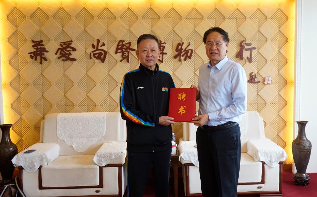 为进一步加强我校体育工作,推动体育学科专业建设,提升体育人才培养质量和教育教学水平,5月29日下午,我校举行特聘教授聘任仪式暨学术报告会,聘请前国家乒乓球队任国强教练担任我校客座教授。校党委副书记、校长李文喜在综合楼八楼会议室热情接待了任国强教授并为其颁发聘书,校党委委员、副校长安涛及相关部门单位负责人参加座谈。