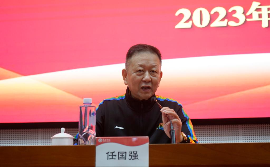 聘任仪式结束后,在综合楼一楼报告厅举行报告会。体育学院党总支副书记、副院长徐德刚教授主持,体育学院党总支书记郭勇和200余名师生参加。任国强教授以《由发球延伸出的乒乓球先进抢攻系统及训练》为题,为同学们讲解了乒乓球先进抢攻系统相关专业理论知识,从发球的意义、技巧和要点进行讲解。他强调,为适应快速多变的时代特征,要将发球技术与第三板抢攻技术、第五板衔接,形成符合自身打法的技战套路。随后,任教授与现场学生对发球抢攻术进行了互动动作演练,分别演练了高抛发球和挥拍中的切、搓、磕等技术,获得满堂喝彩。最后,任教授对学生们提出的长胶、反胶在发球中的作用等问题进行了现场答疑。