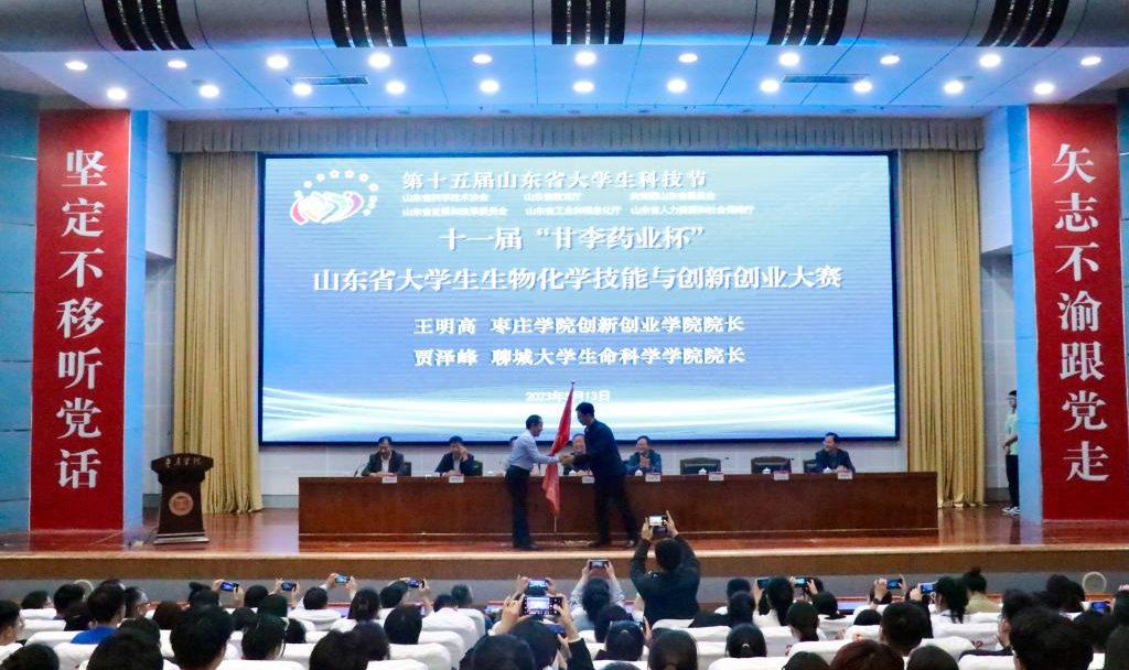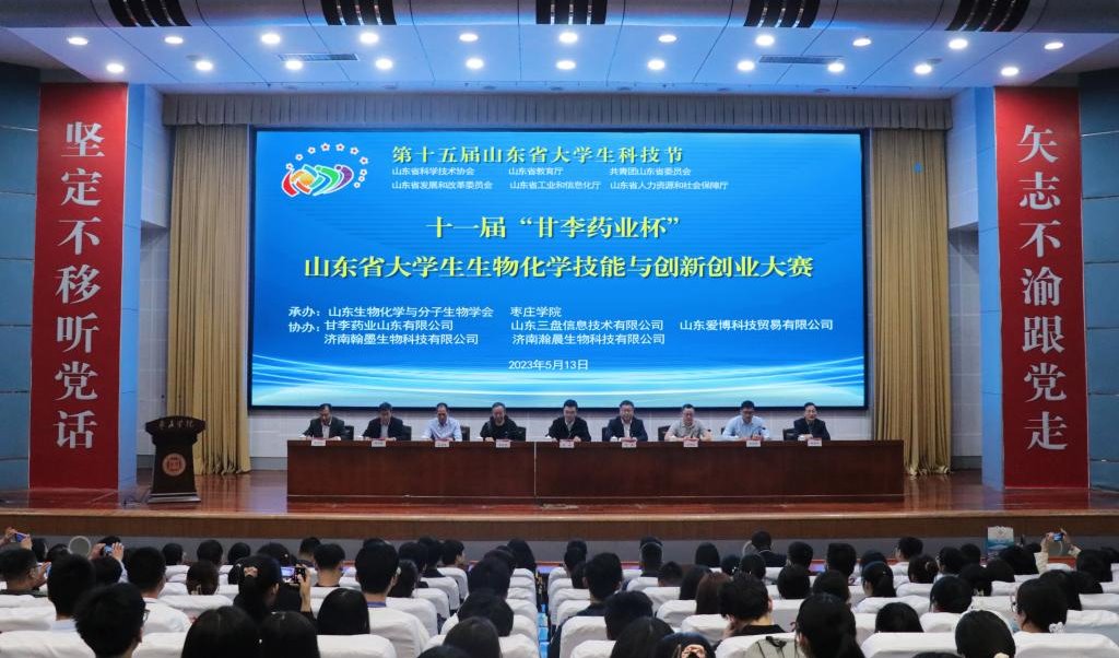 5月13日,第十五届山东省大学生科技节——第十一届“甘李药业杯”山东省大学生生物化学技能与创新创业大赛决赛在我校举行。山东生物化学与分子生物学会副理事长王林、山东生物化学与分子生物学会专职副秘书长王世立,校党委委员、副校长丰雷,甘李药业人力资源总监刘常军出席大赛开幕式并分别致辞。校党委委员、宣传部部长张昌林出席闭幕式并致辞。学校创新创业学院、食品科学与制药工程学院、生命科学学院党政负责人共同出席。