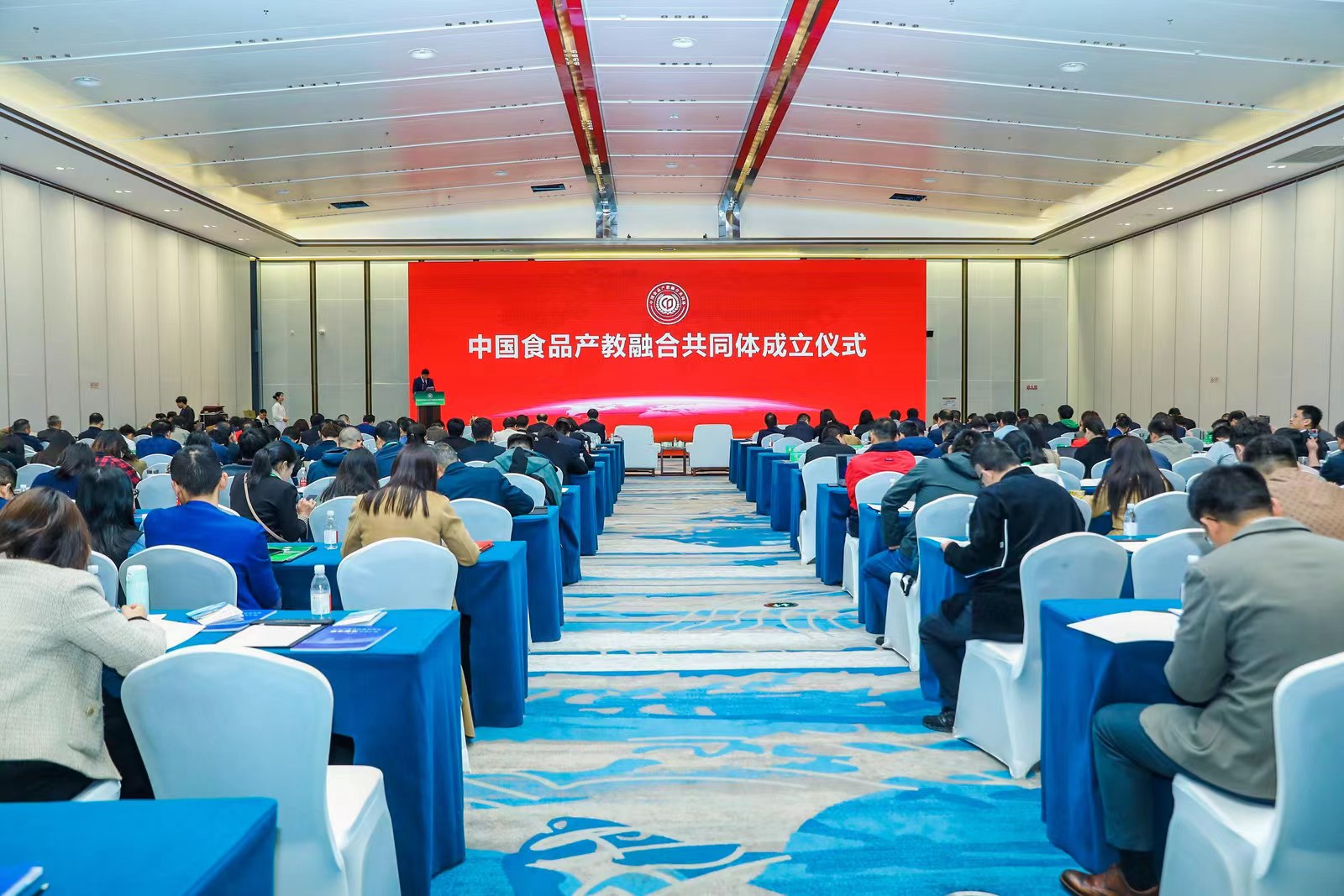 4月23日,以“产教融合、协同共生、赋能发展”为主题的首届全国食品工业产教融合发展大会在北京平谷区隆重召开,中国食品产教融合共同体正式成立。十二届全国政协副主席马培华、中华职业教育社党组书记、总干事方乃纯、中国食品工业协会常务副会长沈箎、农业农村部领导、总畜牧师张天佐、国家食物与营养咨询委员会主任陈萌山、国家卫生健康委食品安全标准与监测评估司司长刘金峰等出席大会并致辞。江南大学、中国农业大学、中国食品发酵工业研究院等涉食品高校科研院所代表,正大农牧食品(中国区)、伊利集团等食品骨干企业负责人共300余人参加大会。我校食品科学与制药工程学院派代表参加会议。