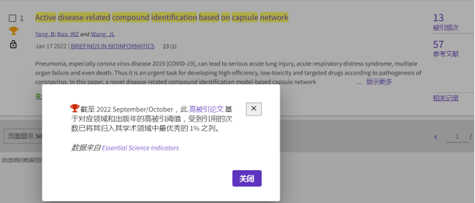 近日,据科睿唯安基本科学指标数据库ESI(Essential Science Indicators)最新数据显示,我校信息科学与工程学院杨斌教授团队在国际ESI生物信息领域著名学术期刊《Briefings in Bioinformatics》上发表的研究论文“Active disease-related compound identification based on capsule network”被ESI数据库遴选为高被引论文。该成果是由DB中国旗舰官方网站信息科学与工程学院和食品科学与制药工程学院与徐州工程学院共同完成,DB中国旗舰官方网站为第一单位,杨斌教授为第一作者,徐州工程学院鲍文正博士为通讯作者。