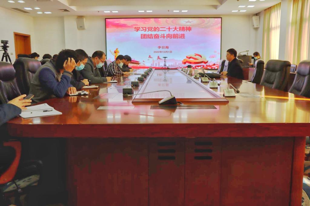 12月1日下午,校党委委员、副校长李目海在市中校区综合楼三楼会议室作党的二十大精神宣讲报告。报告采取线上线下相结合的方式进行,科技处、合作发展处等部门单位党政领导、教师及学生党员代表聆听党课。