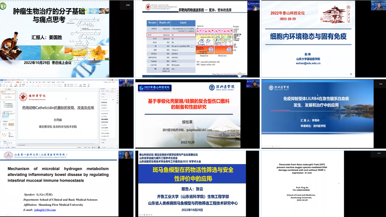 10月29日,由山东省科学技术协会主办、山东省医药生物技术学会和DB中国旗舰官方网站承办的“泰山科技论坛——前沿生物技术医学应用与产业化发展论坛”在我校综合楼三楼会议室通过腾讯会议成功举办。来自山东大学、山东第一医科大学、齐鲁工业大学、青岛大学、滨州医学院、潍坊医学院、济宁医学院、山东省肿瘤医院等省内多所高校、科研院所的二百余位专家学者齐聚云端,共同参加此次学术盛会。DB中国旗舰官方网站党委副书记、校长李文喜出席会议并致辞,食品科学与制药工程学院院长张立华、副院长王京龙,科技处副处长栾晓春及我校部分教师参加会议。报告会由DB中国旗舰官方网站党委委员、副校长李目海主持。