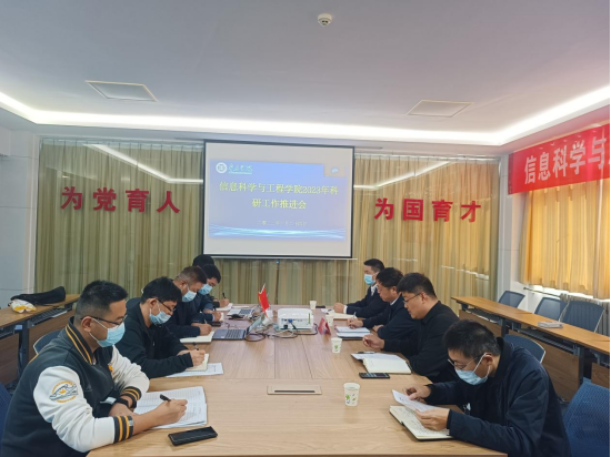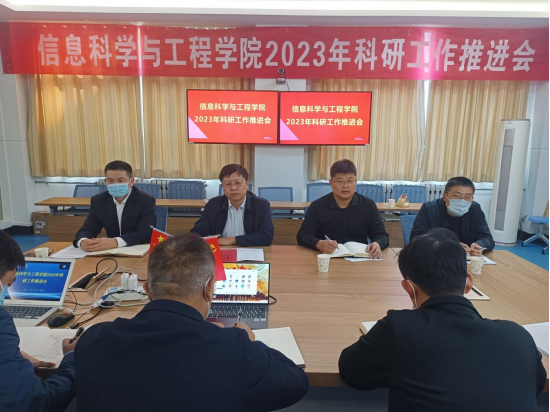 10月24日下午,信息科学与工程学院2023年科研工作推进会在墨子楼二楼中兴会议室召开。校党委委员、副校长李目海出席会议并作动员讲话,信息科学与工程学院党总支书记姬广华、院长闫昕、副院长杨斌,博士教师代表参加线下会议,学院全体教师参加线上会议。姬广华主持会议。