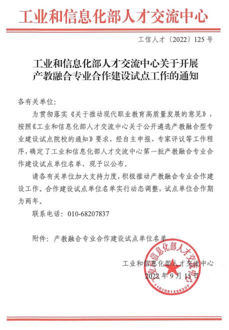 据悉,工业和信息化部人才交流中心于今年4月启动产教融合型专业建设试点院校遴选工作,旨在落实《关于推动现代职业教育高质量发展的意见》等文件要求,使人才培养紧密对接产业升级和技术变革趋势,进一步深化产教融合、校企合作。该项目受到广泛关注,全国共收到近700所院校1000多个专业申报,经自主申报、专家评议等环节,最终评选出23所本科院校、149所高职院校成为首批产教融合专业合作建设试点单位。合作建设试点单位名单实行动态调整,建设期为两年。
