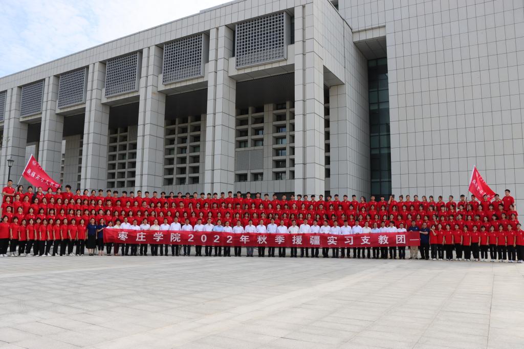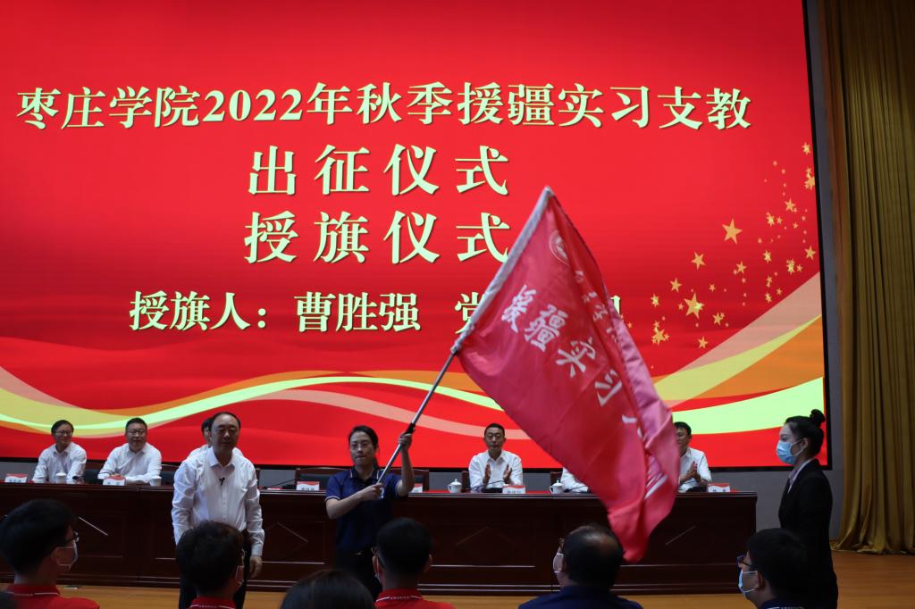 9月21日早上,我校在薛城校区崇德楼报告厅举行2022年秋季援疆实习支教出征仪式。校党委书记曹胜强出席并讲话,校领导曾宪明、李目海、路绪剑、丰雷、安涛、张昌林、林勇出席仪式。办公室、教务处、学生工作处、团委等部门负责人,相关二级学院党政负责人,以及2022年秋季援疆实习支教团全体师生共300余人参加出征仪式。仪式由党委副书记曾宪明主持。