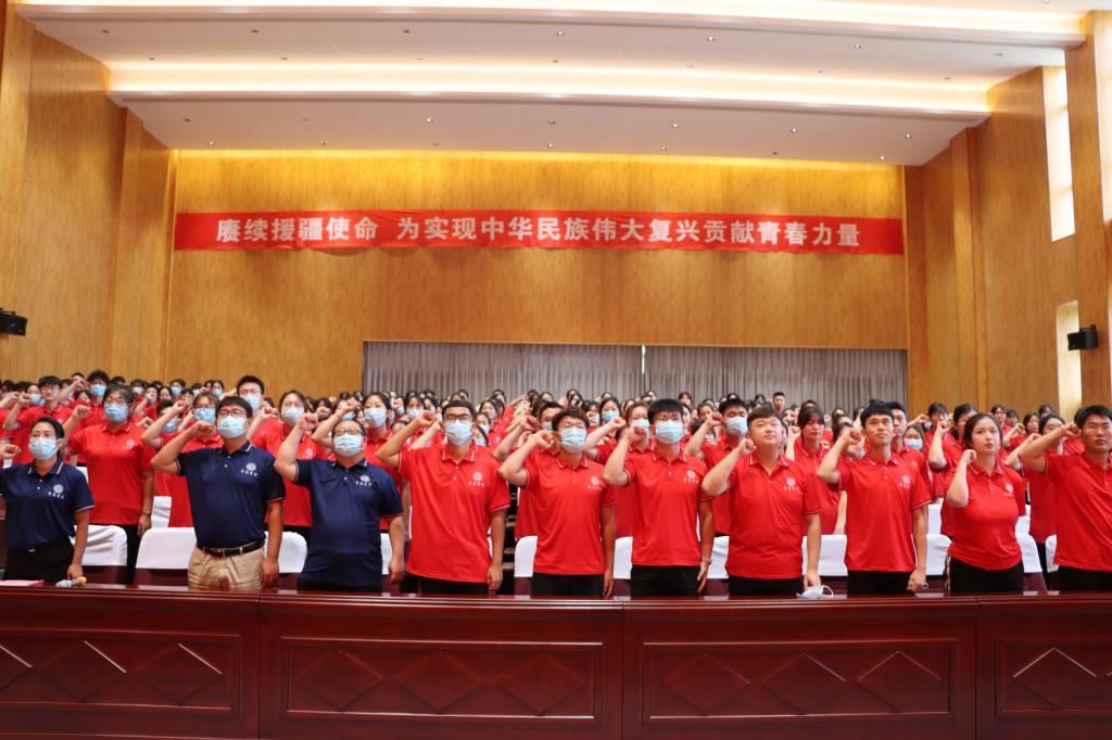 在支教团教师代表张婷带领下,援疆实习支教师生进行了集体宣誓。