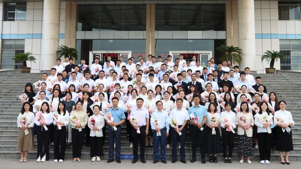 宣誓仪式结束后,全体新入职教师在综合楼前合影留念。