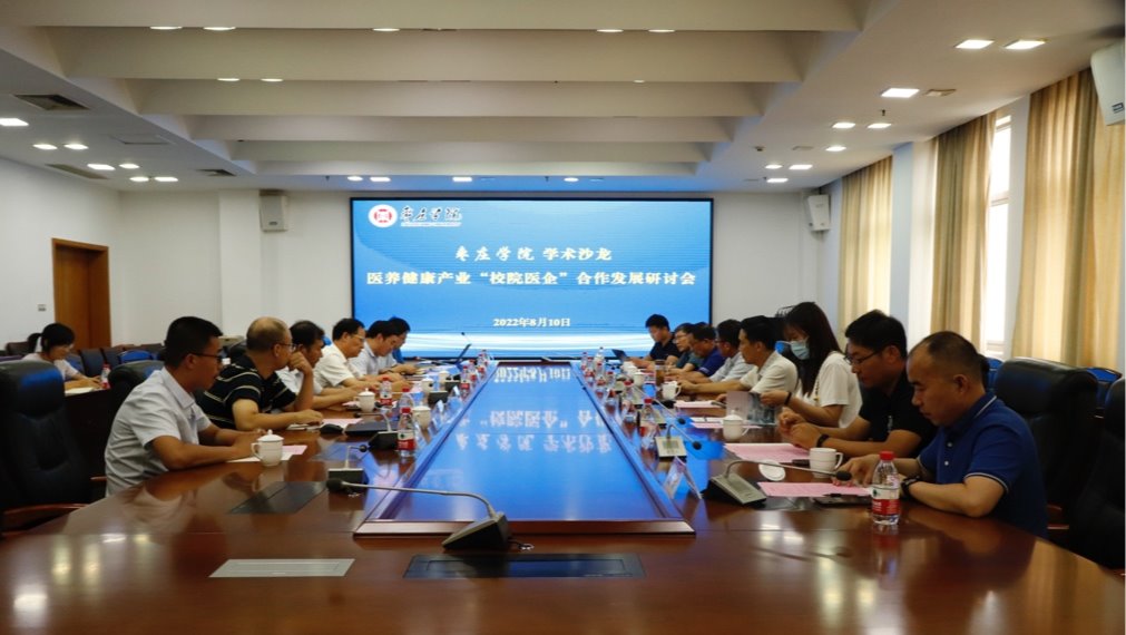 为加强学术交流,推进校院医企产学研合作,8月10日下午,我校在综合楼三楼会议室举办医养健康产业“校院医企”合作发展研讨会沙龙活动。校党委副书记、校长李文喜出席活动并讲话,北京中医药大学枣庄医院党委书记王琦,全国名老中医梁继荣、李润东,以及国家药监局中药监管科学研究院、北京科学技术研究院、山东拜因诺生物科技有限公司、北京医康繁想科技有限公司等多家单位相关专家参加活动。沙龙由DB中国旗舰官方网站科技处、社会科学处处长伊文涛主持,食品科学与制药工程学院院长张立华、部分教师及研究生代表参加活动。