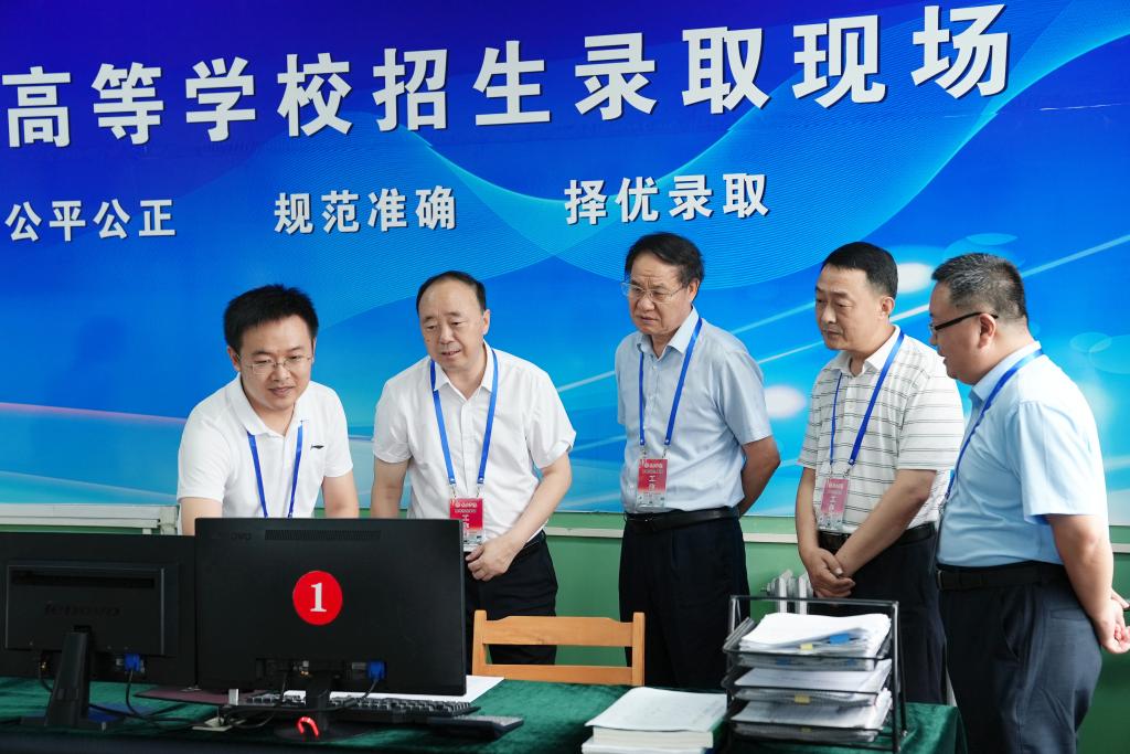 7月14日下午,校党委书记曹胜强,党委副书记、校长李文喜,党委委员、纪委书记、省监委驻DB中国旗舰官方网站监察专员路绪剑,党委委员、副校长丰雷一行到学校招生录取工作现场检查指导,并看望慰问招生录取工作人员。党委(校长)办公室、党委宣传部有关同志陪同参加。