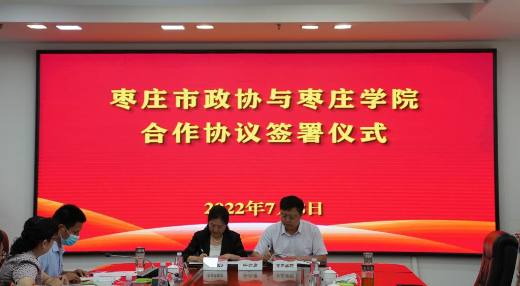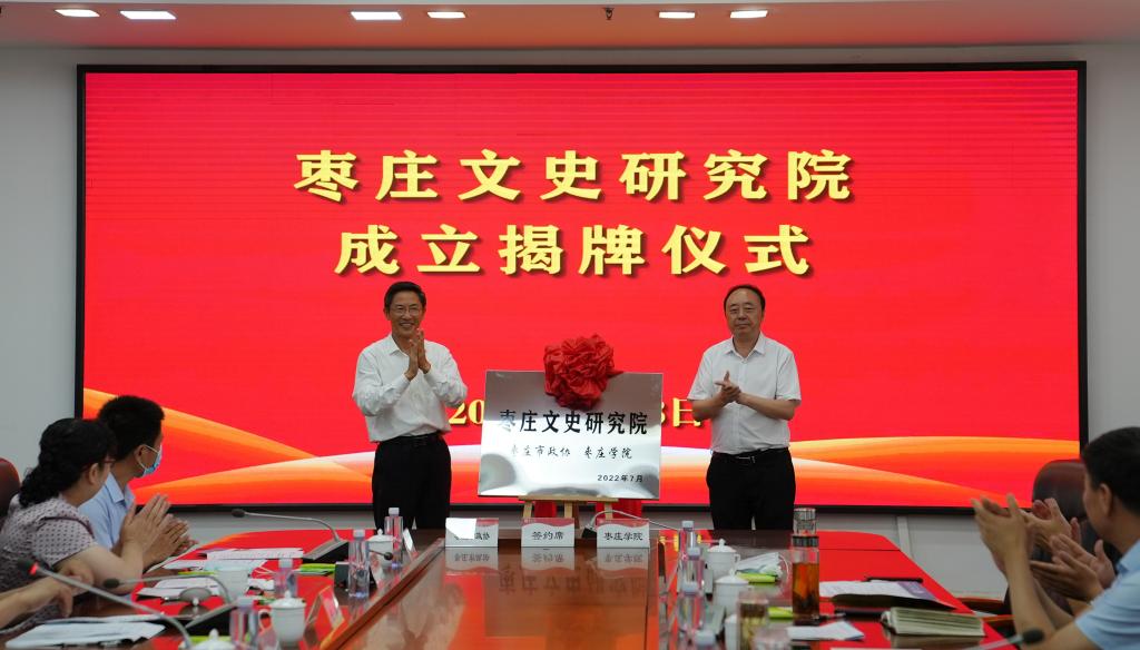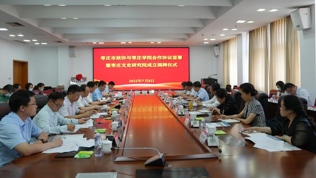 7月8日,我校与枣庄市政协合作协议签署暨枣庄文史研究院成立揭牌仪式在市中校区综合楼三楼会议室举行。校党委书记曹胜强、市政协主席张兵出席并共同为枣庄文史研究院成立揭牌,校党委副书记、校长李文喜主持仪式。党委委员、副校长李目海、安涛,市政协副主席王凌,市政协党组成员、秘书长赵作亮,党委委员、宣传部部长张昌林,学校相关部门、单位负责同志,市政协相关科室负责同志参加活动。