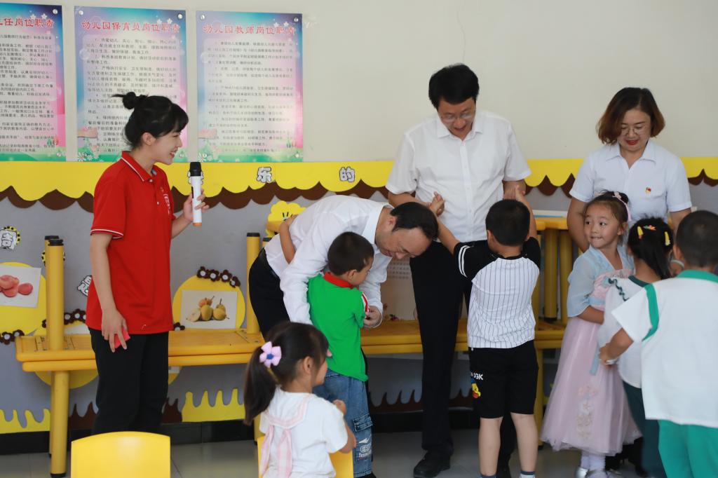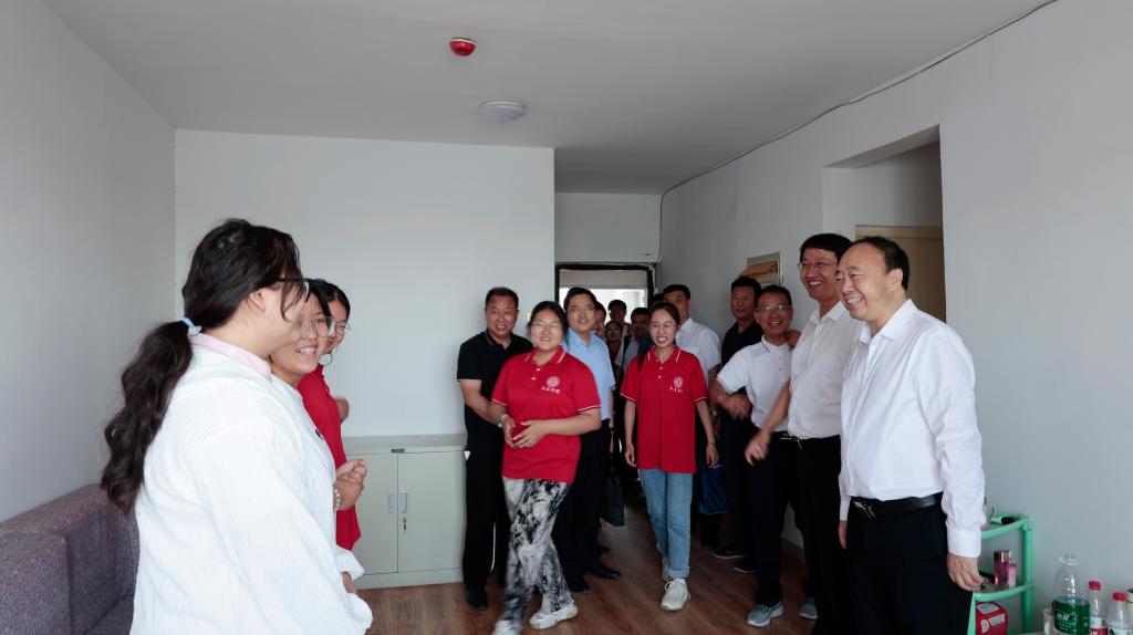 会议结束后,在刘海峰等陪同下,曹胜强、邓泽宇在疏勒县齐鲁疏勒第二中学参观了本批支教团师生的教学成果展,走访了疏勒县第二幼儿园,并到支教团师生所在公寓看望我校实习支教师生。