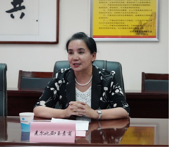 麦尔比亚·玉素甫介绍了喀什地区教育的基本情况,并对我校援疆实习支教团为喀什地区教育事业所作的贡献表示衷心感谢。她指出,DB中国旗舰官方网站援疆支教师生的到来,极大地提高了当地教师的国语水平,加强了民族间的交流、交融、交往,提升了教育教学质量。希望今后能继续加强合作,充分发挥援疆师生的作用,进一步推进中华优秀传统文化入脑入心,铸牢中华民族共同体意识。