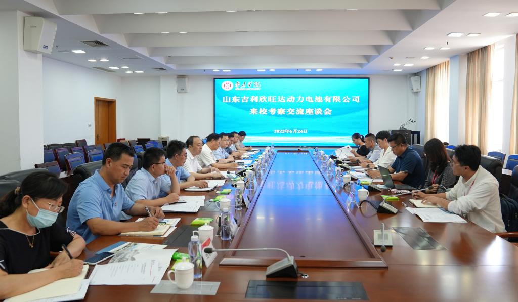 6月24日上午,山东吉利欣旺达集团总裁助理、欣旺达大学执行校长尹庆玲一行5人来校考察交流。校党委书记曹胜强、校长李文喜、副校长安涛热情接待了尹庆玲一行,双方在市中校区综合楼三楼会议室举行座谈。我校办公室、教务处、科技处、合作发展处、招生就业处、机电工程学院、光电工程学院、化学化工与材料科学学院负责人参加座谈会,座谈会由李文喜主持。