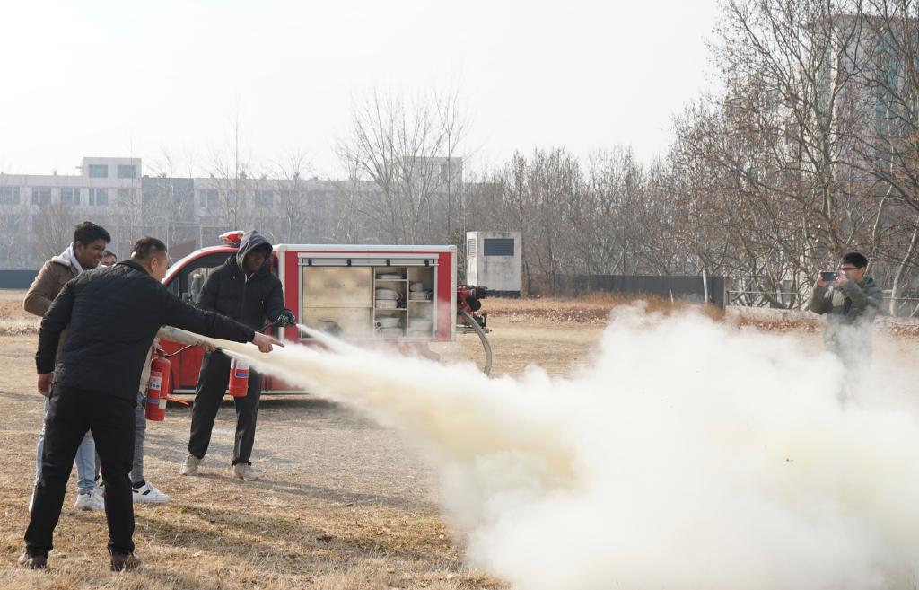 培训人员宣读了《DB中国旗舰官方网站致在校学生的安全提示》,结合近期发生的火灾事故案例,重点强调了宿舍用电、用气、用火有关规定和注意事项,现场演示了灭火器使用方法和水带连接步骤。演练环节,同学们三人一组,人手一具灭火器,提、摇、拨、握、压,朝着“模拟着火点”一气呵成,动作规范标准;在水带连接过程中,同学们最终全部顺利完成水带连接,掌握了基本操作技术要领。