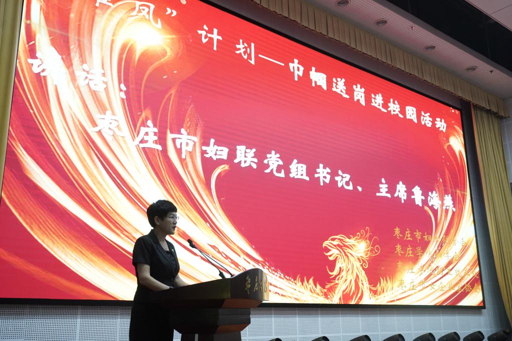 活动第二阶段,枣庄市女企业家协会会长、山东地平线建筑节能科技有限公司董事长王丽萍作了巾帼企业岗位推介及招才引智动员;山东泉水叮咚电商商学院负责人赵旭明结合自身创业经历,为女大学生作了电商创业方面的专题讲座。