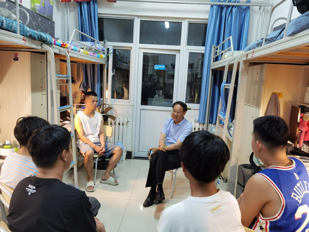 6月7日晚上,校党委副书记、校长李文喜深入市中校区学生公寓走访调研,为学生送去关怀和温暖,学生工作处相关负责人陪同调研。
