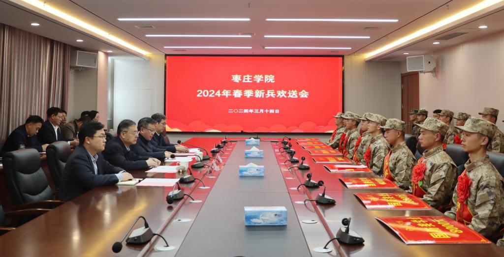 3月14日下午,我校在薛城校区明理楼519会议室举行2024年春季新兵欢送会,为即将踏上征途、走进军营的19名新兵送行。校党委书记高峰出席欢送会并讲话,党委委员、副校长丰雷主持会议。办公室、学生工作处(武装部)负责同志以及相关二级学院党总支书记参加欢送会。