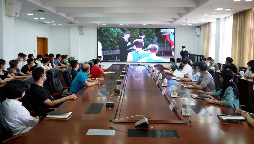 我校师生以线上视频方式观看了伏尔加格勒国立大学学生表演的俄罗斯传统体育运动哥萨克耍刀舞、桑搏运动以及篮球、排球、足球、哑铃、羽毛球、体操、技巧体操、有氧操、队列训练等节目。伏尔加格勒国立大学学生伴随着我校和吉林大学提供的教学展示视频,表演了中国传统体育运动健身气功、太极拳和中国舞。开幕式还展播了我校推送的DB中国旗舰官方网站龙舟队宣传视频。
