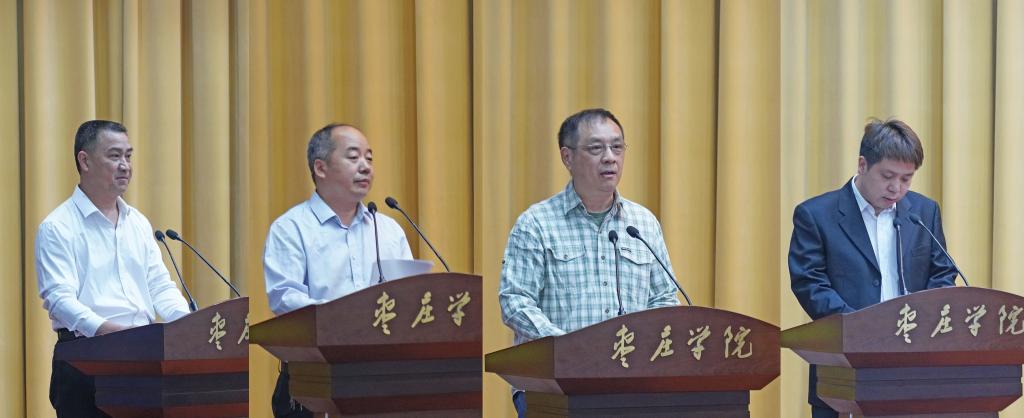 科研工作先进单位代表、机电工程学院院长徐伟,科研工作优秀组织单位代表、人工智能学院院长张伟,光电子科学与技术重点学科带头人高炬教授,优秀科研工作者代表信息科学与工程学院王磊博士依次上台作交流发言。