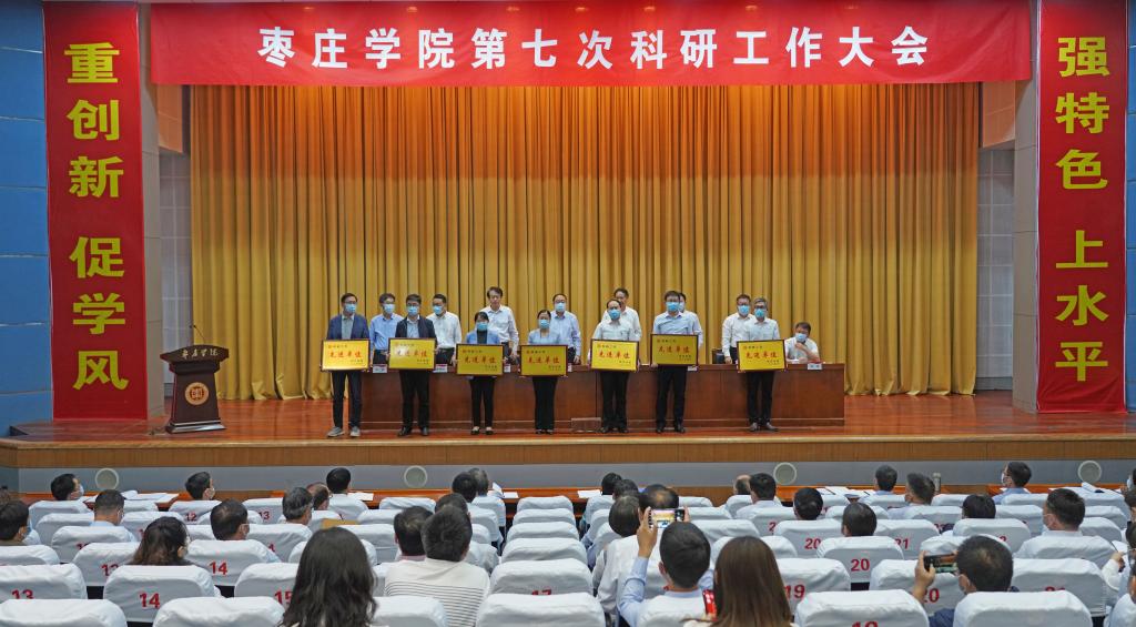 大会现场对受表彰的科研工作先进单位、科研工作优秀组织单位代表,学校重点建设学科带头人及2019-2020年高质量科研成果一等奖获得者进行了颁奖。
