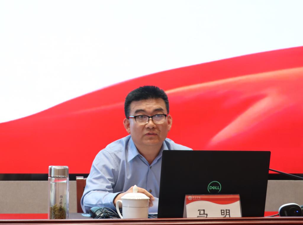 马明以《认真学习贯彻〈党史学习教育工作条例〉 传承红色基因 赓续红色血脉》为题,从“深刻把握《条例》出台的背景和重大意义,《条例》的主要内容和显著特点,有力有效推动《条例》各项规定落地落实”三个方面展开讲述,为师生作了一场精彩的党史学习教育报告。他鼓励师生们要在学习党史中始终坚定理想信念,矢志践行初心使命,发扬优良传统,传承红色基因。