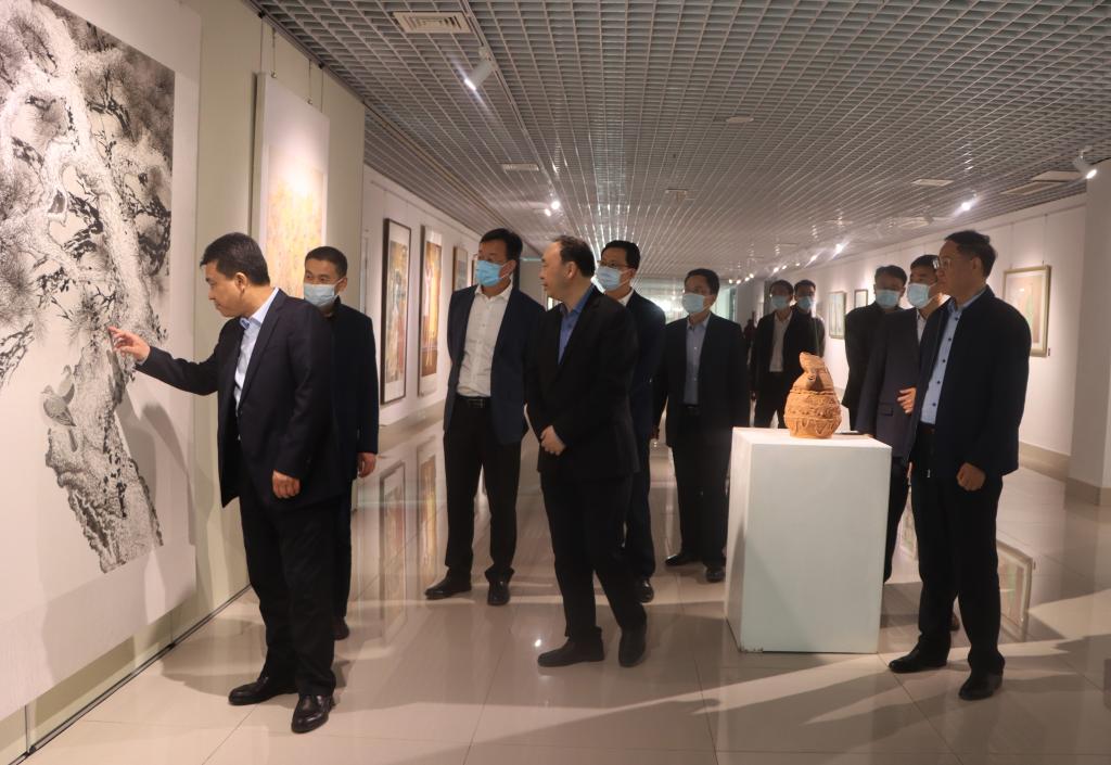 巴海峰一行还参观了我校美术与艺术设计学院青年学生美术作品展,详细了解学校文化建设情况。展出的作品主题鲜明、内容丰富、风格多样,吸引领导们不时驻足观看。巴海峰一行认真听取了展出作品的素材来源、技法、用彩、意境及创作过程等相关介绍,对展出作品给予高度评价,并希望枣院学子能够继续发扬创新精神,做好文化传承和创新工作。