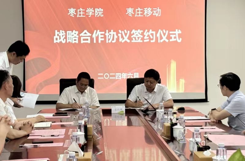 6月6日下午,我校与中国移动通信集团山东有限公司枣庄分公司战略合作签约仪式在枣庄移动公司七楼会议室举行。学校党委书记高峰,党委委员、副校长李目海,枣庄移动公司党委书记、总经理王保华出席。学校办公室、合作发展处、科技处、网络中心等部门负责同志参加签约仪式。会议由枣庄移动公司党委委员、副总经理赵传宝主持。